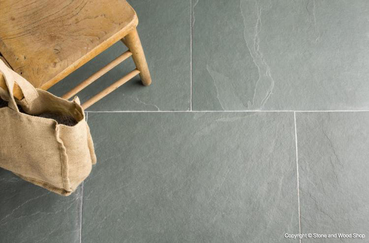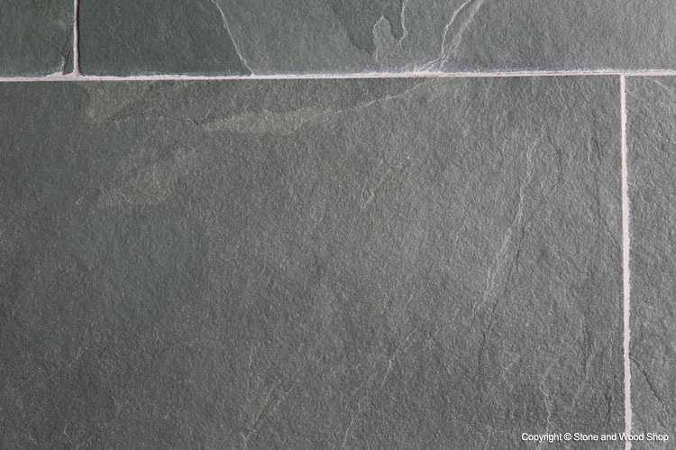 With the same properties as the riven black slate, this attractive and hardwearing slate has mellow tonal variation, with colours of sage, asparagus and fern-greens through to cool greys. Tough and uncompromising, an ideal choice of slate floor tiles for a busy home.