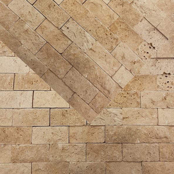 Similar to the larger formats, this travertine splitface mosaic tile is a really subtle addition to a bathroom or kitchen splash back. With the same tones and textures as well as distressed edges, the rustic look seeps out.