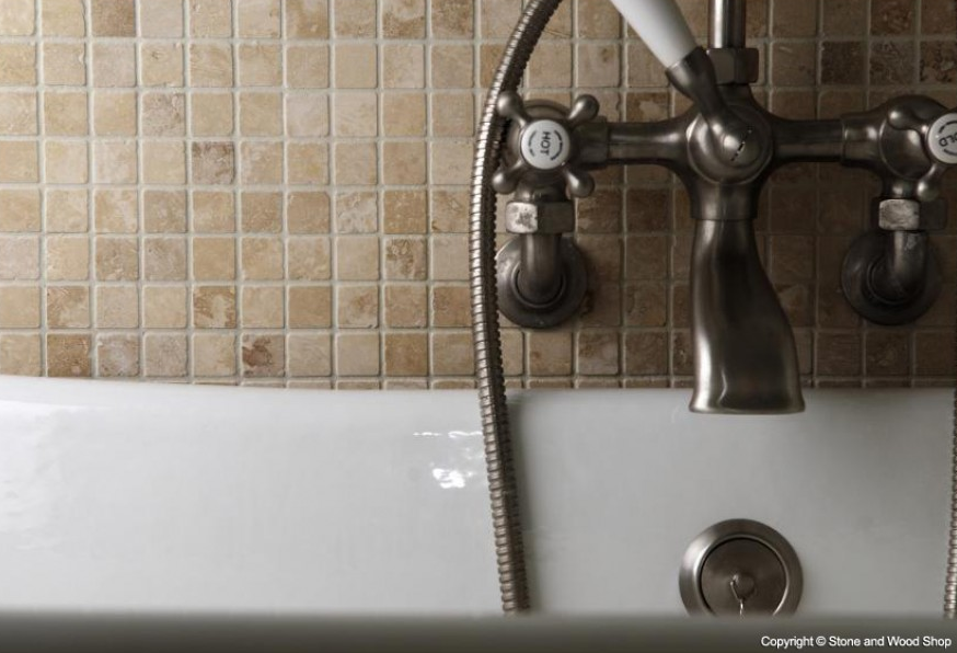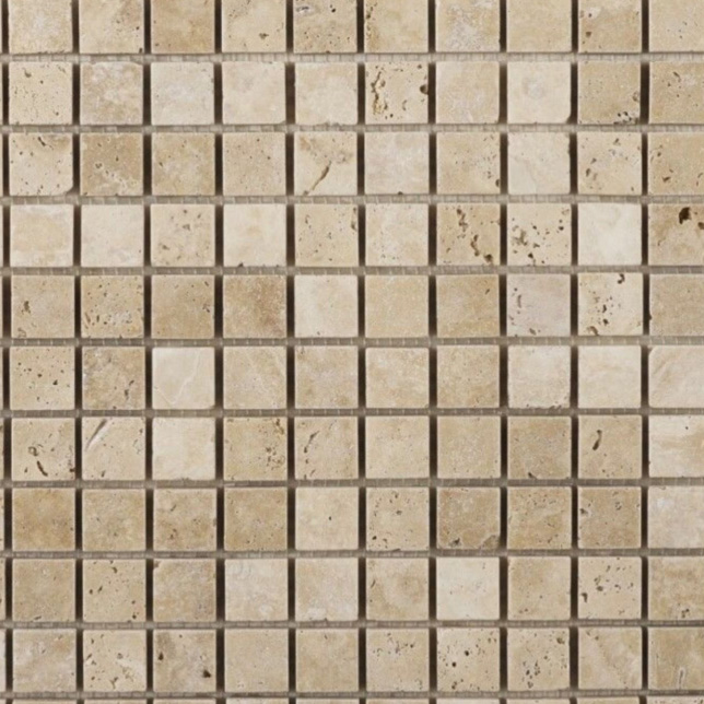 Similar to the larger formats, this travertine mosaic tile is a really subtle addition to a bathroom or kitchen splash back. With the same tones and textures as well as distressed edges, the rustic look seeps out.