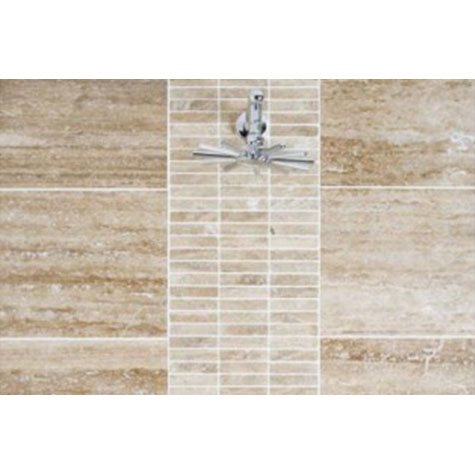 Similar in appearance to the Ivory Vein-Cut but darker. Featuring frothy waves of chocolate, cappuccino and buttermilk, evocative of a choppy ocean. The surface of this Travertine floor tile is polished but still retains an underlying mottled appearance.