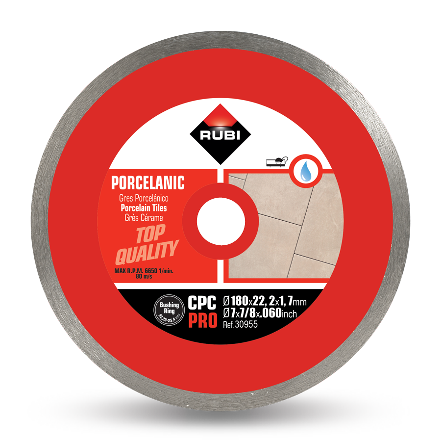 Recommended blade to cut fine porcelain tiles with less than 1″ (25 mm.) thickness.