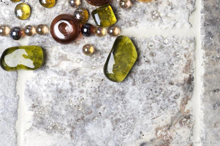 This tile is a truly different selection to the usual travertines you find available. Very hard, durable and full of character, this heavily tumbled stone has characteristic pitting and worn edges. It has a cloudy grey base colour with subtle blends of purples, browns and charcoals, finished with milky swathes.